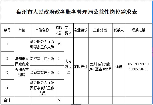 (二)本招聘公告由盤州市人民政府政務(wù)服務(wù)管理局負(fù)責(zé)解釋;咨詢電話:0858-3839333;