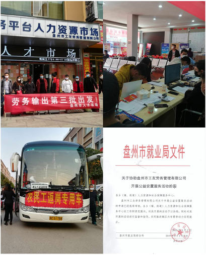 疫情防控期間,為了幫助務(wù)工人員外出復(fù)工,做到疫情防控和復(fù)工復(fù)產(chǎn)兩不誤,做好自我防護(hù)的同時(shí)積極就業(yè),有效緩解就業(yè)壓力,助力企業(yè)復(fù)工復(fù)產(chǎn)。盤(pán)州市人才市場(chǎng)聯(lián)系了浙江(杭州、海鹽)江蘇昆山、蘇州多家大型企業(yè)。