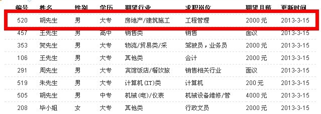 315.本站出現(xiàn)520編號幸運(yùn)求職者,特贈送全年VIP,時(shí)間:2013.3.15-2014.3.15。